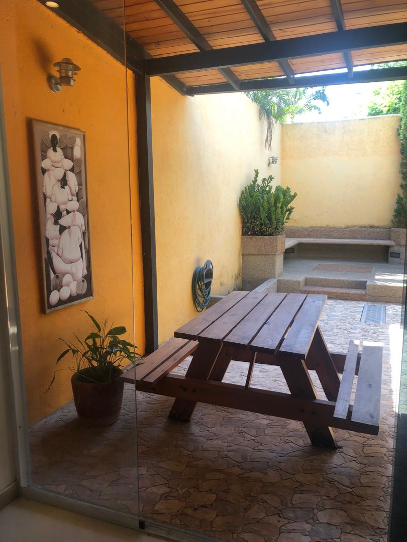 Patio con área social, parrillera caney, bar, cuarto de depósito con hidroneumático,1/2 baño en esta área.